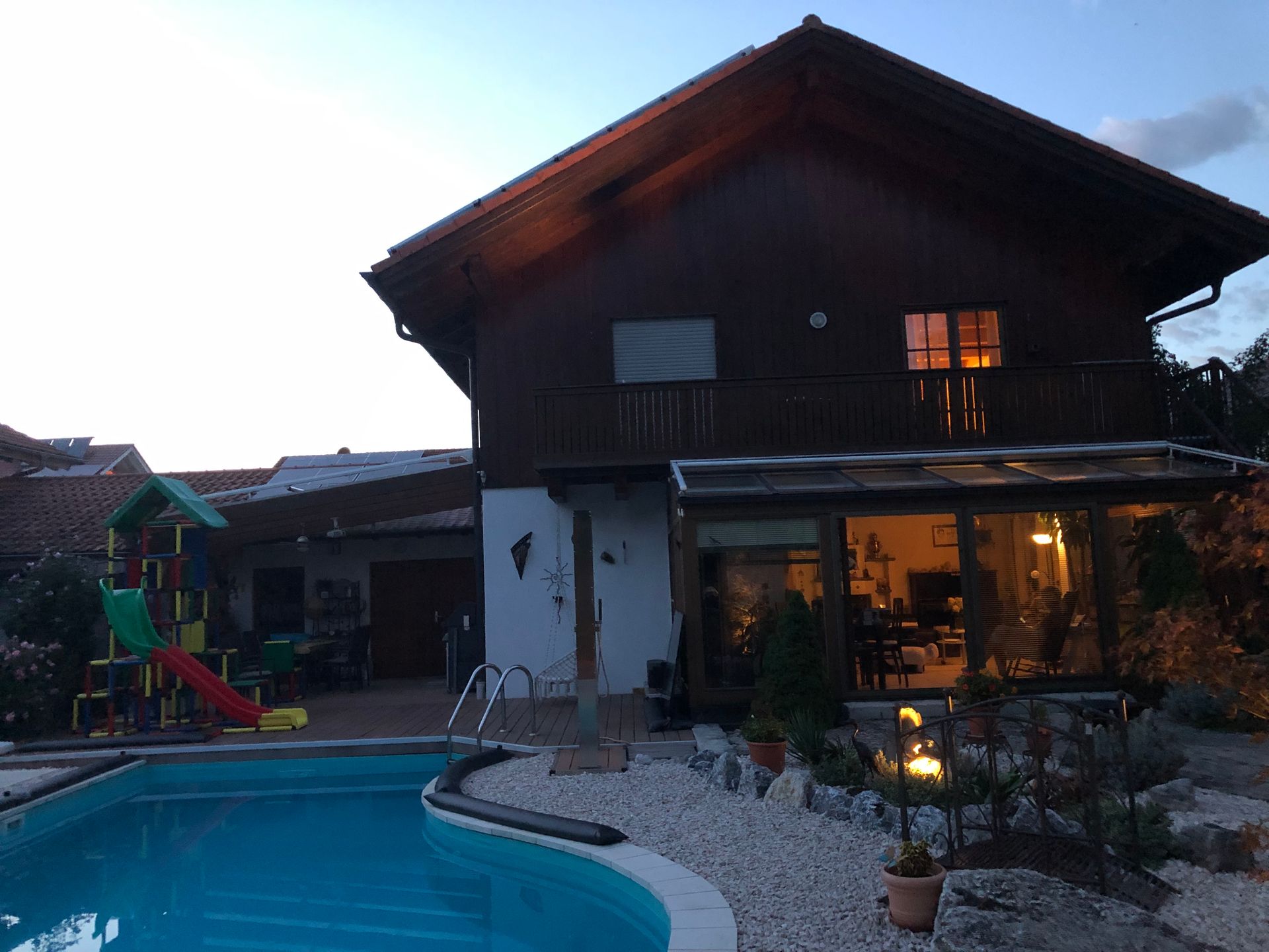 Dann bot sich die Chance auf das erträumte Einfamilienhaus: 2001 haben wir mit der Holzwerkstatt Reinthaler ganz im Süden der Stadt ein Haus gebaut. Im Jahr 2004 konnten wir den Garten um einen Schwimmteich erweitern und 2016 mit der Firma Kaffl Garten und Landschaftsbau komplett umgestalten.